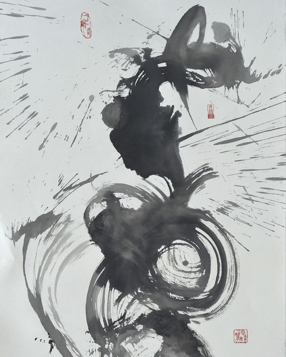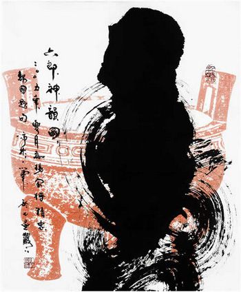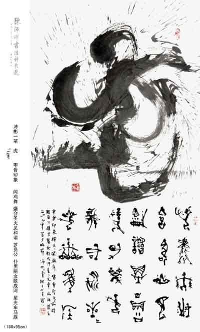 1985年以來(lái),沛彬每年赴日本講學(xué)辦展,他是大陸最早去向臺(tái)灣進(jìn)行文化交流的書法家,他先后五次赴臺(tái),1991年在臺(tái)灣國(guó)父紀(jì)念館首展引起轟動(dòng)。2005年他在東京辦展,用“一筆壽”字創(chuàng)下了二萬(wàn)美金的記錄?!凹坠怯∠蟆笔桥姹蚓C合藝術(shù)與感悟的升華,他呼喚遠(yuǎn)古,放眼未來(lái),用心用筆去整合,感覺(jué)形象文字,既現(xiàn)代又古樸。