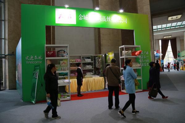 蠶桑專題造型簡潔獨特,進入1號館大門,首先映入眼簾的是中間的圓形展臺,黃白兩色蠶繭組成的“蠶桑”和“全國第一”字樣顯眼奪目,展臺上擺滿了各種蠶桑深加工產(chǎn)品,吸引了很多觀眾。展臺周圍分布4個展廳,廣西蠶業(yè)技術(shù)總站、廣西南寧天龍生物科技有限公司、金城江新興繭絲有限公司、廣西頤生園生態(tài)農(nóng)業(yè)有限公司各一個展廳,分別展示展銷各自的特色產(chǎn)品。記者看到,在廣西蠶業(yè)技術(shù)總站展廳,各色展品琳瑯滿目,穿著民族服裝的工作人員更為展品增添了壯鄉(xiāng)特色。在高檔絲綢產(chǎn)品展廳,展出的蠶絲被、圍巾、旗袍等高檔絲綢產(chǎn)品深受北京市民喜愛,很多觀眾駐足觀賞、了解、購買。