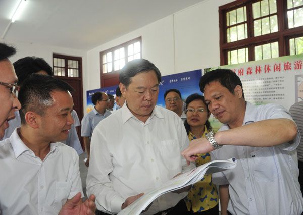 張副主席(前左二)在了解林場的旅游規(guī)劃