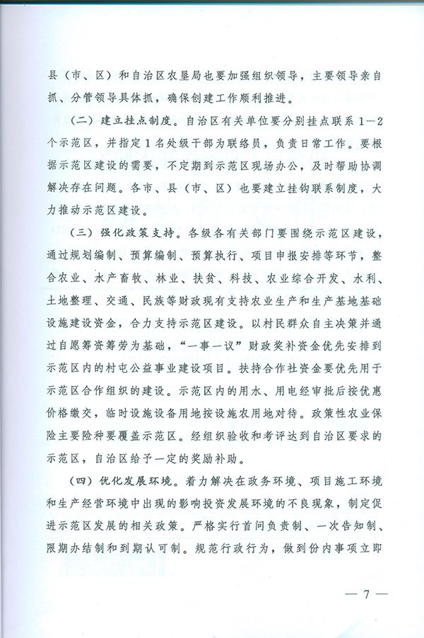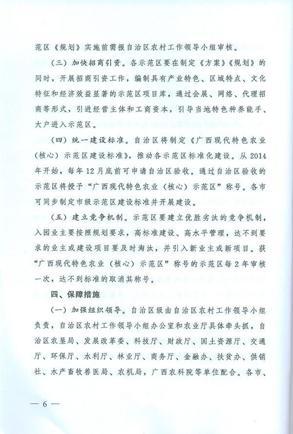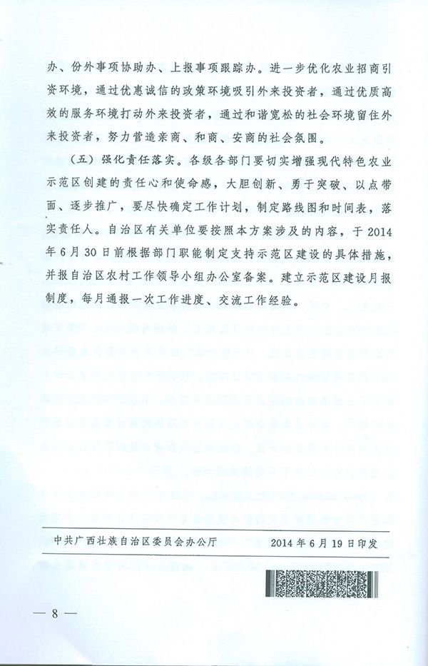 以下是自治區(qū)黨委辦公廳 自治區(qū)人民政府辦公廳 關(guān)于印發(fā)《廣西現(xiàn)代特色農(nóng)業(yè)是(核心)示范區(qū)創(chuàng)建方案》的通知方案全文掃描件: