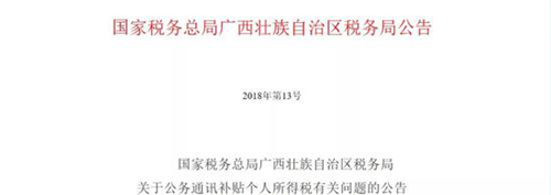 7月18日,廣西區(qū)稅務(wù)總局發(fā)布了關(guān)于調(diào)整公務(wù)交通、通訊補(bǔ)貼稅前扣除標(biāo)準(zhǔn)的公告,并自9月1日起正式施行。