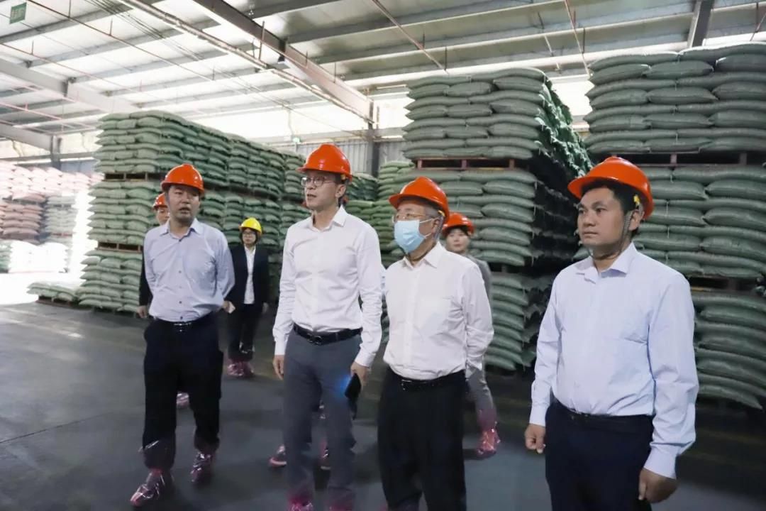 10月27日下午,廣西融資擔(dān)保集團(tuán)黨委書記、董事長劉可,廣西農(nóng)業(yè)信貸融資擔(dān)保有限公司黨委書記、董事長魏福軍一行先后到廣西農(nóng)業(yè)龍頭企業(yè)行業(yè)協(xié)會會員單位廣西園豐牧業(yè)集團(tuán)股份有限公司總部、園豐集團(tuán)雙鳴谷靈山香雞核心示范區(qū)基地進(jìn)行調(diào)研。靈山縣副縣長陸漢川,園豐集團(tuán)總裁潘夏雨、副總裁方軍陪同調(diào)研。