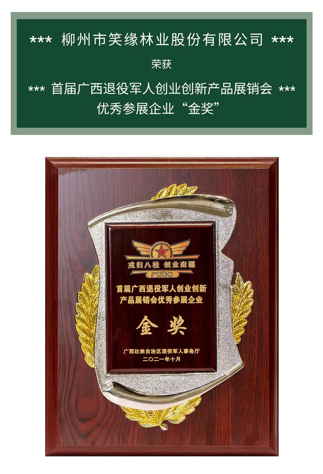 10月31日上午,2021年“建行杯”廣西首屆退役軍人產(chǎn)品展銷會暨第二屆退役軍人創(chuàng)業(yè)創(chuàng)新大賽頒獎典禮在南寧國際會展中心隆重舉行,廣西農(nóng)業(yè)龍頭企業(yè)行業(yè)協(xié)會會員單位——柳州市笑緣林業(yè)股份有限公司受邀參加廣西首屆退役軍人創(chuàng)業(yè)創(chuàng)新產(chǎn)品展銷會暨第二屆退役軍人創(chuàng)業(yè)創(chuàng)新大賽并榮獲“金獎”。自治區(qū)副主席李彬,南部戰(zhàn)區(qū)陸軍政治工作部少將副主任郭樹林,自治區(qū)人民政府副秘書長李盛,自治區(qū)退役軍人廳黨組書記、廳長周長青,廣西軍區(qū)政治工作局大校主任羅文勇,中國建設(shè)銀行廣西分行黨委委員、副行長張石強等領(lǐng)導(dǎo)出席頒獎典禮,并向獲獎企業(yè)(團隊)頒獎,本次活動至此圓滿結(jié)束。