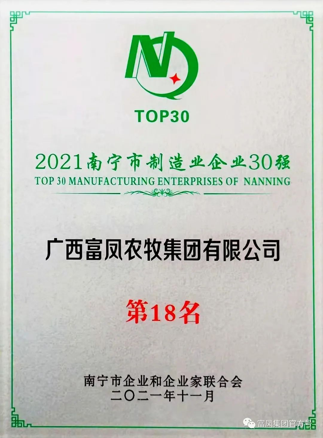 富鳳集團在以李非董事長的帶領下,在過去的一年里,面對突如其來的新冠肺炎疫情和嚴峻的外部發(fā)展環(huán)境的影響,在市委市政府的堅強領導下,攻堅克難,勇于擔當,保持企業(yè)各項生產經營秩序,保障肉食品生產和供應,為勝利抗擊疫情,維護社會穩(wěn)定做出了突出貢獻,由此榮獲2021年南寧市企業(yè)50強和南寧市制造業(yè)企業(yè)30強實至名歸!