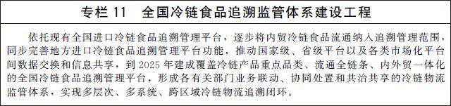 加快建設(shè)全國性冷鏈物流追溯監(jiān)管平臺,完善全鏈條監(jiān)管機制,針對冷鏈物流環(huán)境、主要作業(yè)環(huán)節(jié)、設(shè)施設(shè)備管理等重點,規(guī)范實時監(jiān)測、及時處置、評估反饋等監(jiān)管過程,逐步分類實現(xiàn)全程可視可控、可溯源、可追查。創(chuàng)新監(jiān)管手段,加大現(xiàn)代信息技術(shù)和設(shè)施設(shè)備應(yīng)用力度,強化現(xiàn)場和非現(xiàn)場監(jiān)管方式有機結(jié)合。借鑒新冠肺炎疫情防控期間進口冷鏈食品檢驗檢測檢疫經(jīng)驗做法,優(yōu)化完善工作機制,建立科學(xué)、可靠、高效的冷鏈物流檢驗檢測檢疫體系。