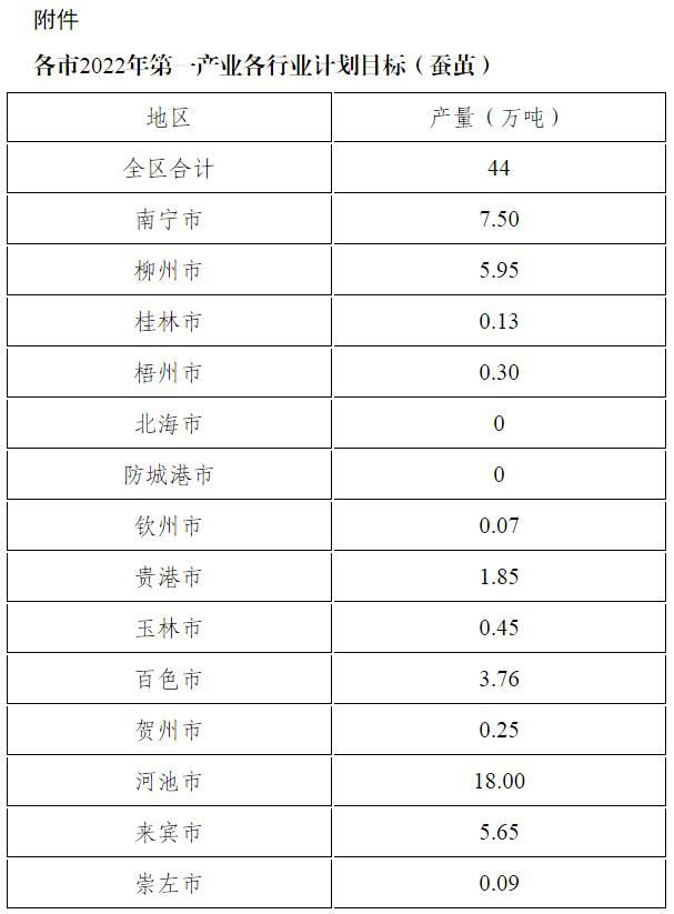 附件:各市2022年第一產(chǎn)業(yè)各行業(yè)計(jì)劃目標(biāo)(蠶繭)