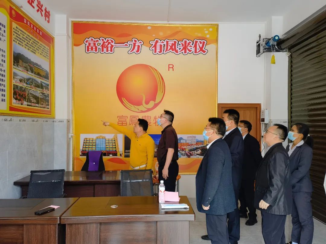 慶典儀式后,凌云縣人民政府縣長(zhǎng)謝旦杏等領(lǐng)導(dǎo)在富鳳集團(tuán)李非董事長(zhǎng)的陪同下參觀公司辦公宣傳欄,介紹富鳳集團(tuán)產(chǎn)業(yè)布局及發(fā)展歷程,產(chǎn)業(yè)化帶動(dòng)農(nóng)戶(hù)養(yǎng)殖增收致富典型案例和成效。