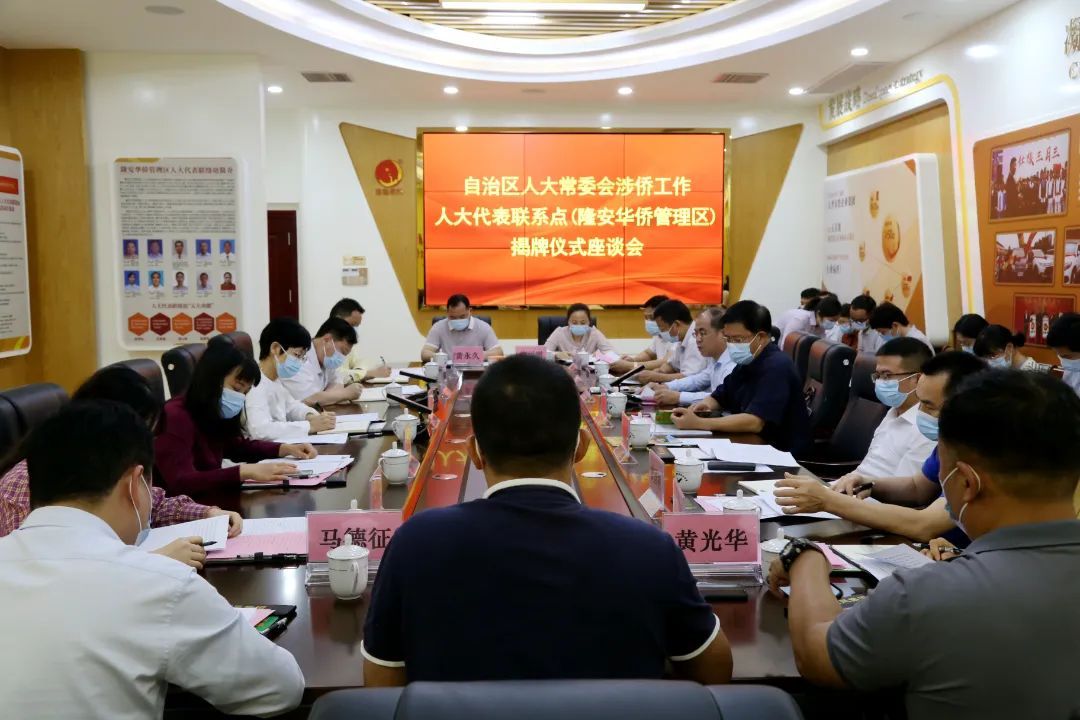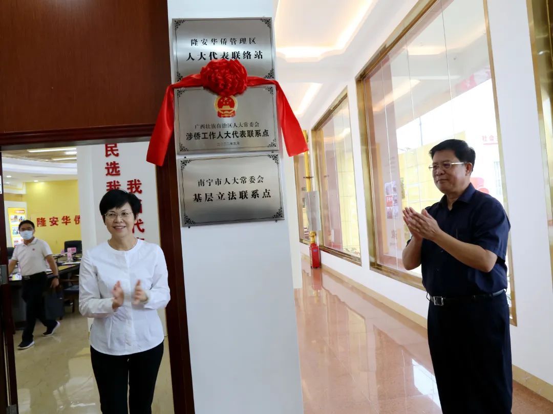 自治區(qū)人大常委會副主任楊靜華,南寧市人大常委會副主任周如斯共同為“自治區(qū)人大涉僑工作人大代表聯(lián)系點”揭牌。