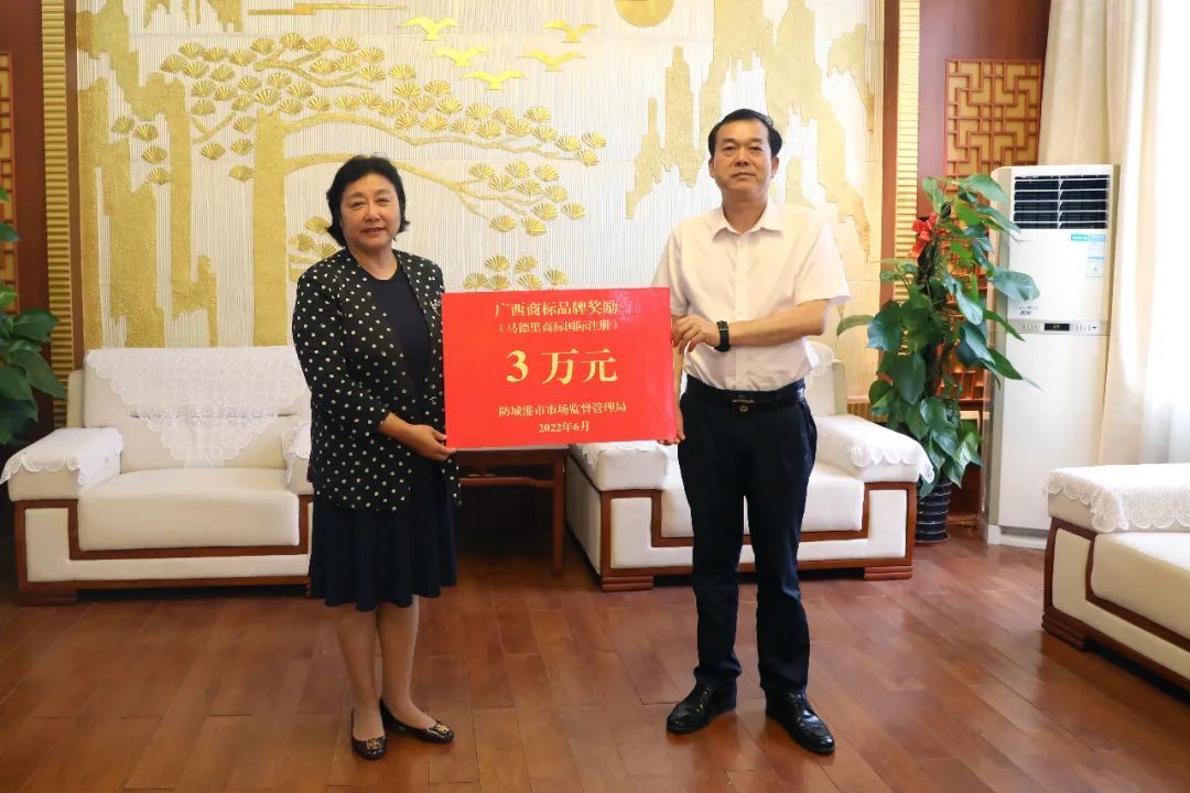 6月1日,廣西農(nóng)業(yè)龍頭企業(yè)行業(yè)協(xié)會(huì)理事單位——防城港澳加糧油工業(yè)有限公司正式領(lǐng)取“九龍桂”商標(biāo)獲得的廣西商標(biāo)品牌獎(jiǎng)勵(lì)補(bǔ)助3萬元。