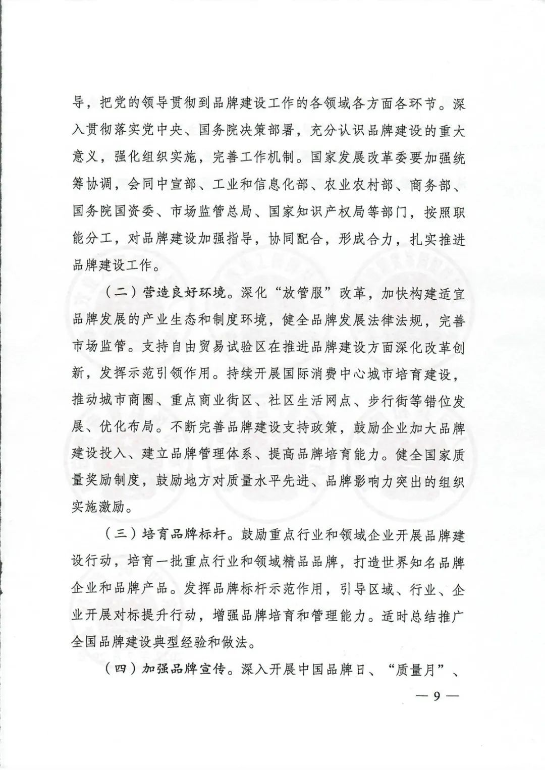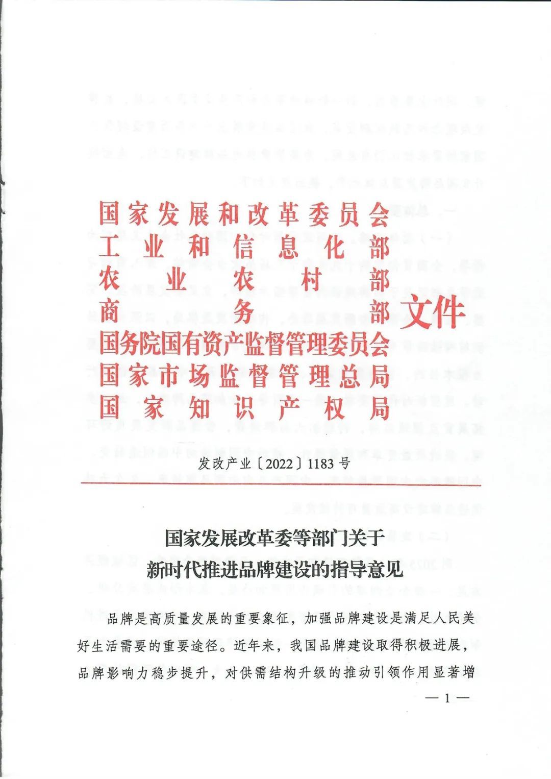 為高質(zhì)量推進(jìn)品牌建設(shè)工作,全面提升我國(guó)品牌發(fā)展總體水平,2022年8月5日,國(guó)家發(fā)展改革委聯(lián)合多部門發(fā)布《關(guān)于新時(shí)代推進(jìn)品牌建設(shè)的指導(dǎo)意見(jiàn)》(以下簡(jiǎn)稱:《指導(dǎo)意見(jiàn)》),《指導(dǎo)意見(jiàn)》指出品牌是高質(zhì)量發(fā)展的重要象征,同時(shí)也要看到,我國(guó)品牌發(fā)展水平與全面建設(shè)現(xiàn)代化國(guó)家的要求相比仍有差距。我們要不斷適應(yīng)新時(shí)代新要求,進(jìn)一步引導(dǎo)企業(yè)加強(qiáng)品牌建設(shè),進(jìn)一步拓展重點(diǎn)領(lǐng)域品牌,持續(xù)擴(kuò)大品牌消費(fèi),營(yíng)造品牌發(fā)展良好環(huán)境,促進(jìn)質(zhì)量變革和質(zhì)量提升,推動(dòng)中國(guó)制造向中國(guó)創(chuàng)造轉(zhuǎn)變、中國(guó)速度向中國(guó)質(zhì)量轉(zhuǎn)變、中國(guó)產(chǎn)品向中國(guó)品牌轉(zhuǎn)變,久久為功促進(jìn)品牌建設(shè)高質(zhì)量可持續(xù)發(fā)展。
