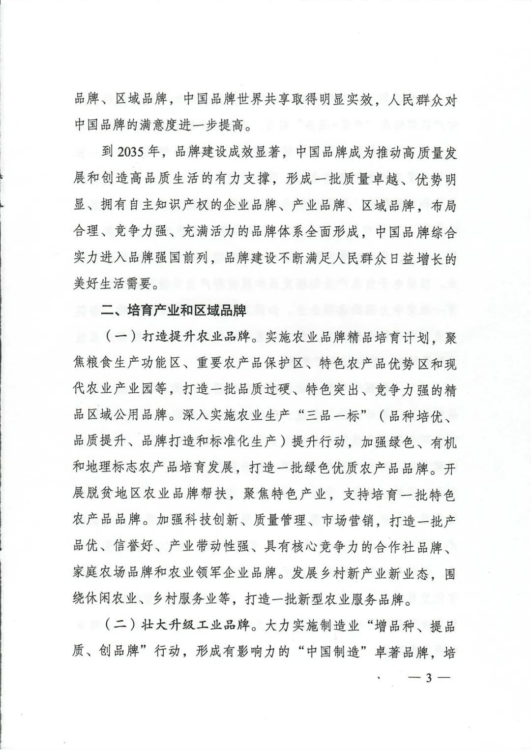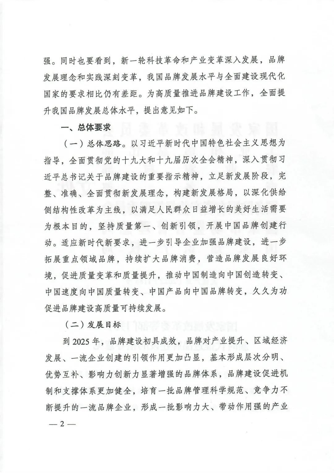 《指導(dǎo)意見(jiàn)》強(qiáng)調(diào),到2035年,品牌建設(shè)成效顯著,中國(guó)品牌成為推動(dòng)高質(zhì)量發(fā)展和創(chuàng)造高品質(zhì)生活的有力支撐,形成一批質(zhì)量卓越、優(yōu)勢(shì)明顯、擁有自主知識(shí)產(chǎn)權(quán)的企業(yè)品牌、產(chǎn)業(yè)品牌、區(qū)域品牌,布局合理、競(jìng)爭(zhēng)力強(qiáng)、充滿活力的品牌體系全面形成,中國(guó)品牌綜合實(shí)力進(jìn)入品牌強(qiáng)國(guó)前列,品牌建設(shè)不斷滿足人民群眾日益增長(zhǎng)的美好生活需要。