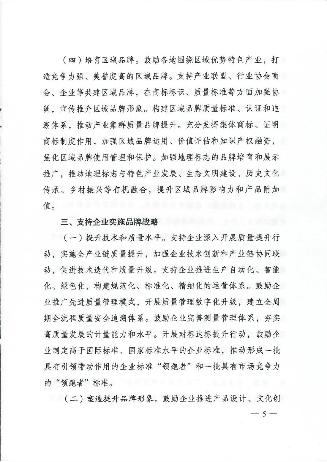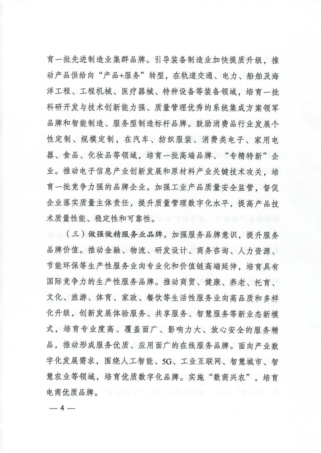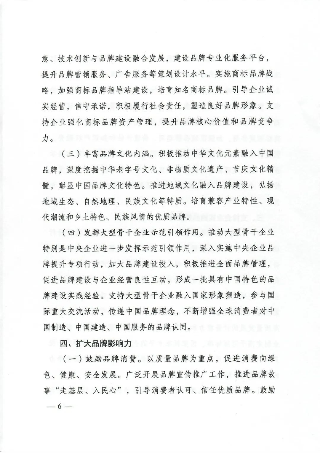《指導(dǎo)意見(jiàn)》指出,到2025年,品牌建設(shè)初具成效,品牌對(duì)產(chǎn)業(yè)提升、區(qū)域經(jīng)濟(jì)發(fā)展、一流企業(yè)創(chuàng)建的引領(lǐng)作用更加凸顯,基本形成層次分明、優(yōu)勢(shì)互補(bǔ)、影響力創(chuàng)新力顯著增強(qiáng)的品牌體系,品牌建設(shè)促進(jìn)機(jī)制和支撐體系更加健全,培育一批品牌管理科學(xué)規(guī)范、競(jìng)爭(zhēng)力不斷提升的一流品牌企業(yè),形成一批影響力大、帶動(dòng)作用強(qiáng)的產(chǎn)業(yè)。品牌、區(qū)域品牌,中國(guó)品牌世界共享取得明顯實(shí)效,人民群眾對(duì)中國(guó)品牌的滿意度進(jìn)一步提高。