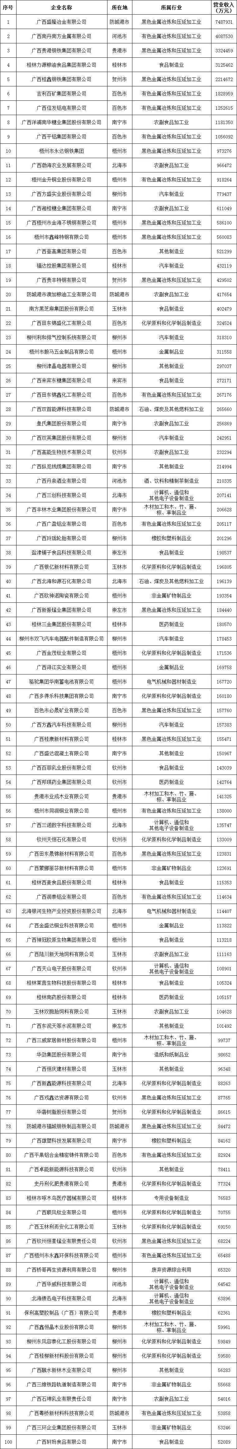 2022廣西民營(yíng)企業(yè)制造業(yè)100強(qiáng)榜單