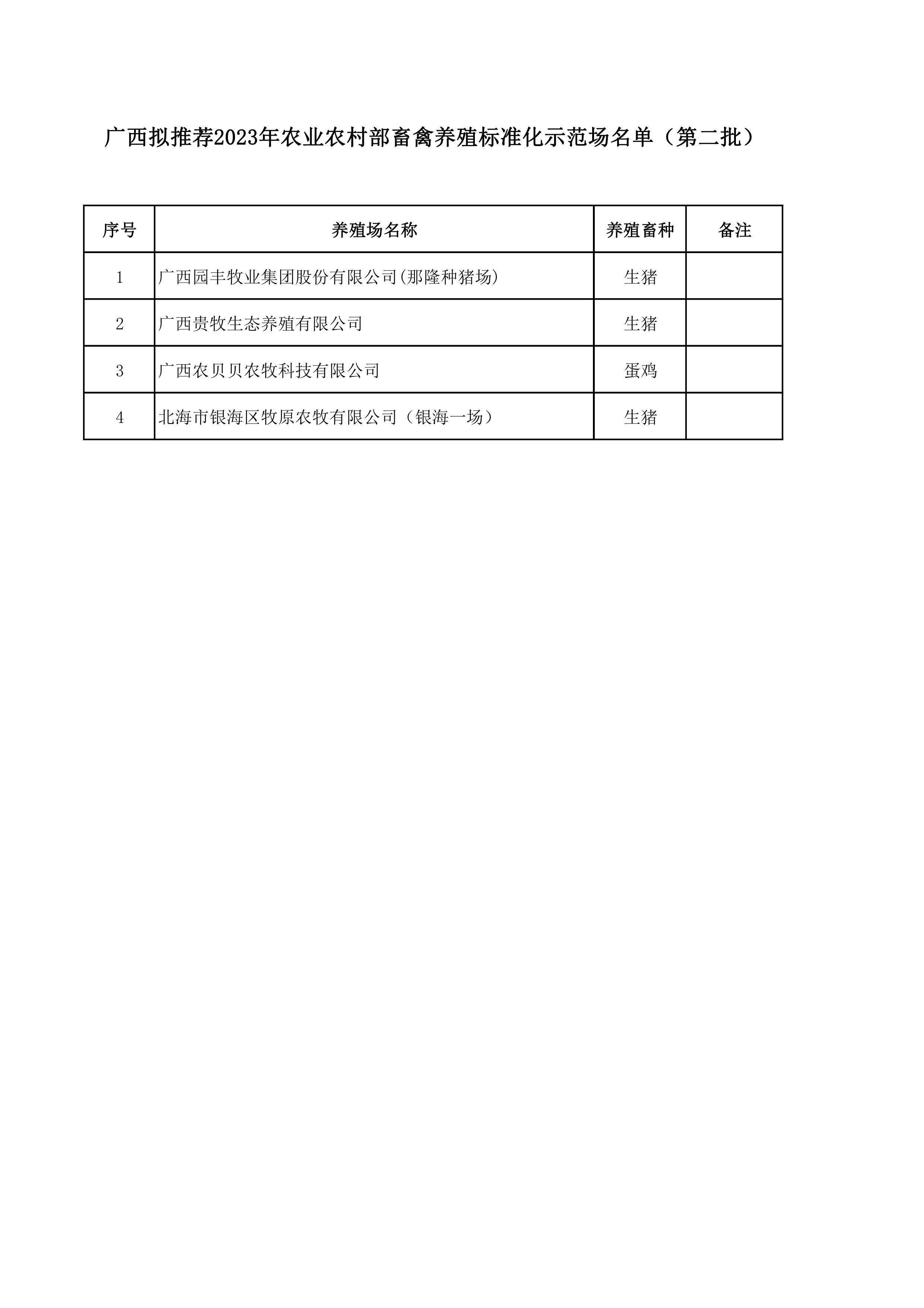 附件:廣西擬推薦2023年農(nóng)業(yè)農(nóng)村部畜禽養(yǎng)殖標(biāo)準(zhǔn)化示范場名單(第二批)
