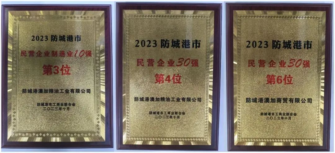 會(huì)上還同時(shí)發(fā)布了“2023防城港市民營(yíng)企業(yè)制造業(yè)10強(qiáng)”、“2023防城港市民營(yíng)企業(yè)就業(yè)10強(qiáng)”和“2023年防城港市民營(yíng)企業(yè)制最具發(fā)展力民營(yíng)企業(yè)”等獲獎(jiǎng)名單,澳加糧油和澳加商貿(mào)公司還分別獲得“2023防城港市民營(yíng)企業(yè)制造業(yè)10強(qiáng)”第3名、“2023防城港市民營(yíng)企業(yè)30強(qiáng)”第6名。